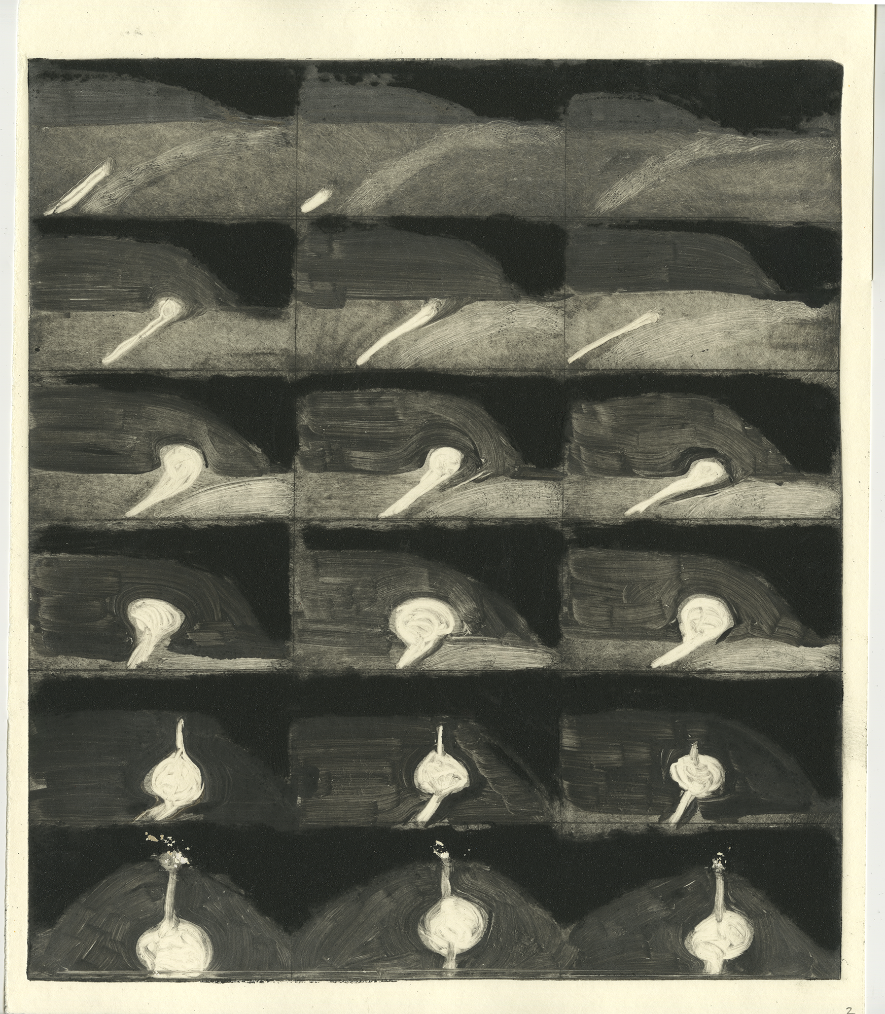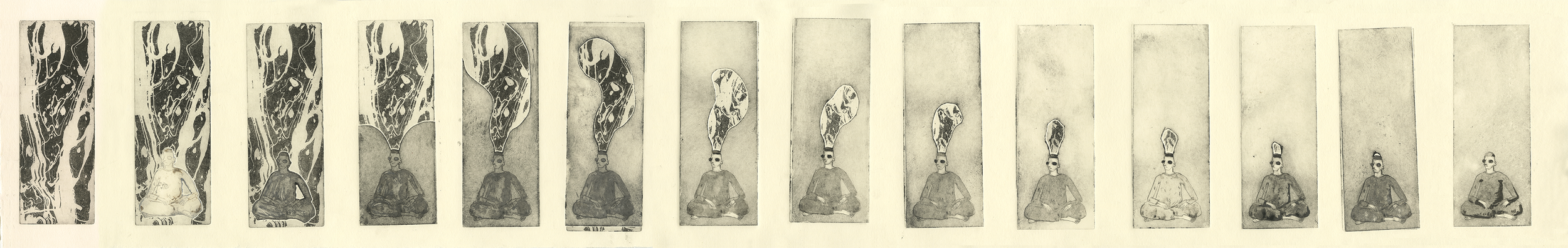 I was exploring the themes of old time, prayer and alchemy. The work is a combination between traditional and experimental intaglio techniques and animation.
